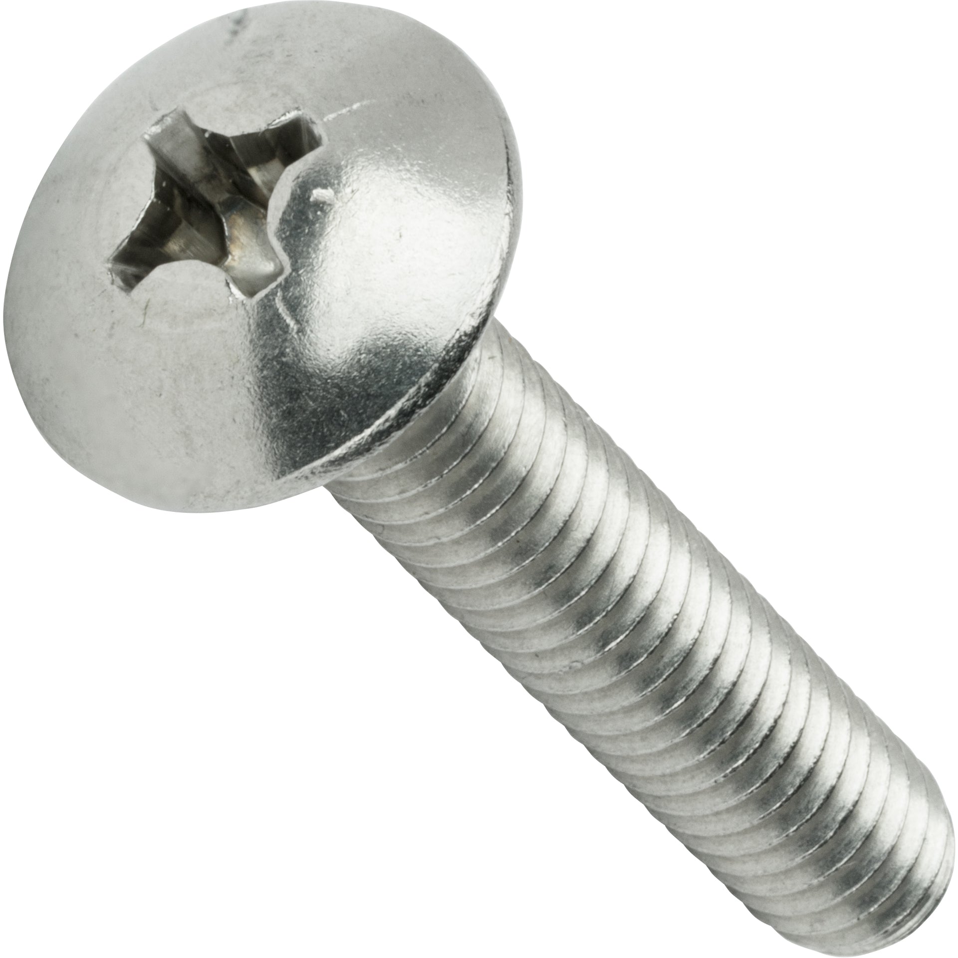 This truss head screw installs easily with a Philips screwdriver and is used to fasten covers, trim pieces, or lightweight components where a broader bearing area and corrosion resistance are beneficial.